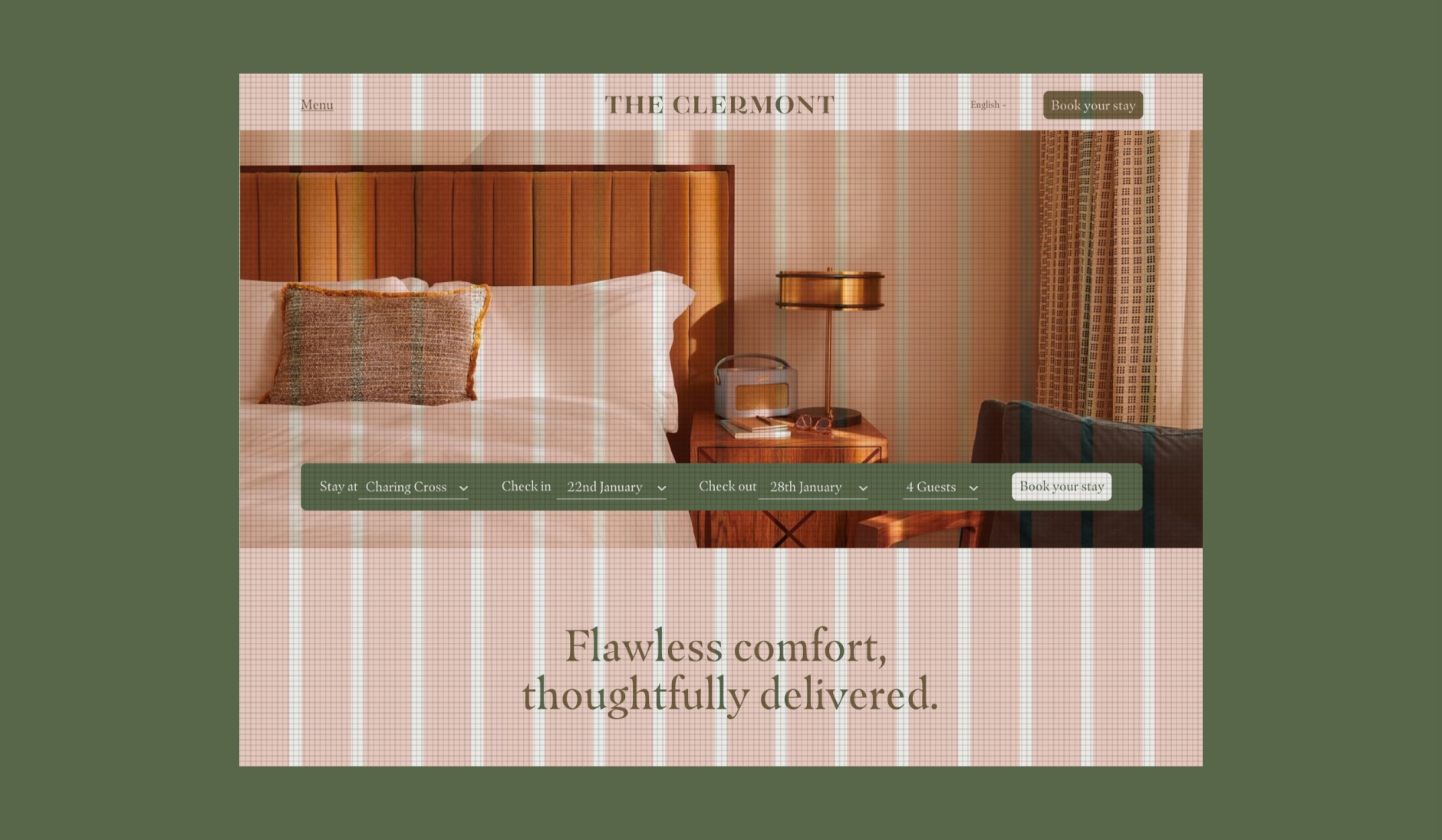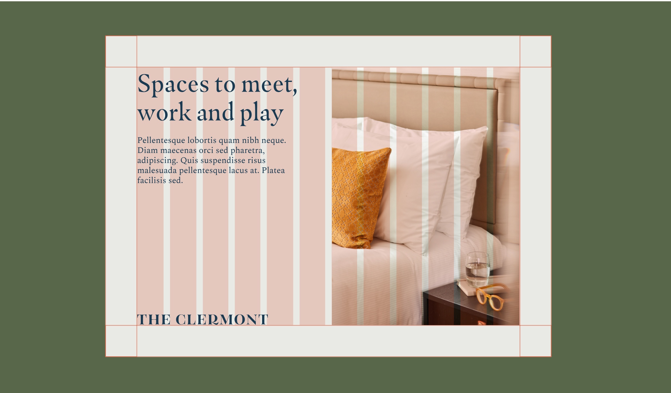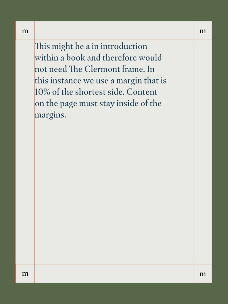 At the beginning of every project, it’s crucial to establish your margins when working with typography. We use the simplest of rules to create margins when including The Clermont frame in your design. And all content should sit within those margins.