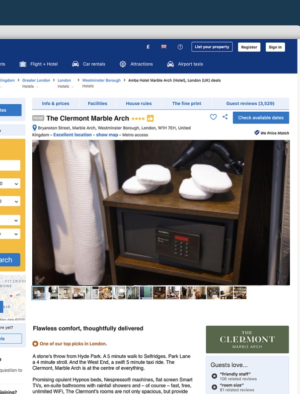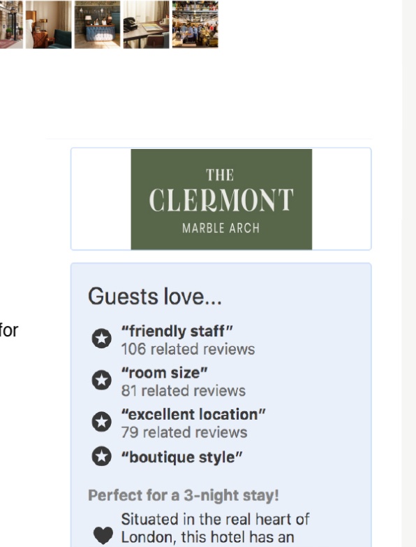 Guests have a hierarchy of importance here. Firstly, they need information. Quickly. Where is it? What’s included? Secondly, a feel for the hotel. What experience can they expect? So a subtle lean towards our more direct tone is required here.