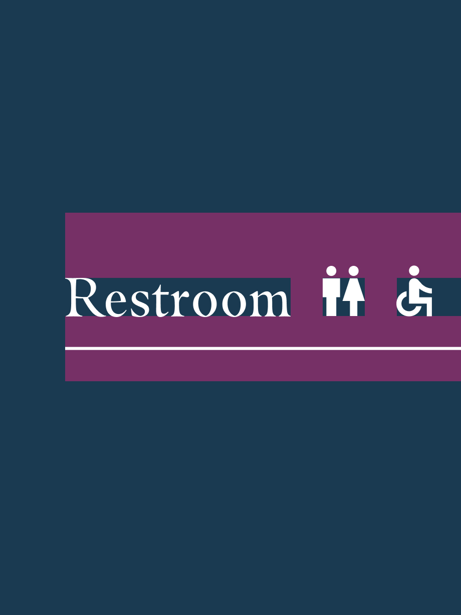 We always use our Royal Blue as a background and white for the type. This is to make sure there is ample contrast which ensures the wayfinding is clear and legible.